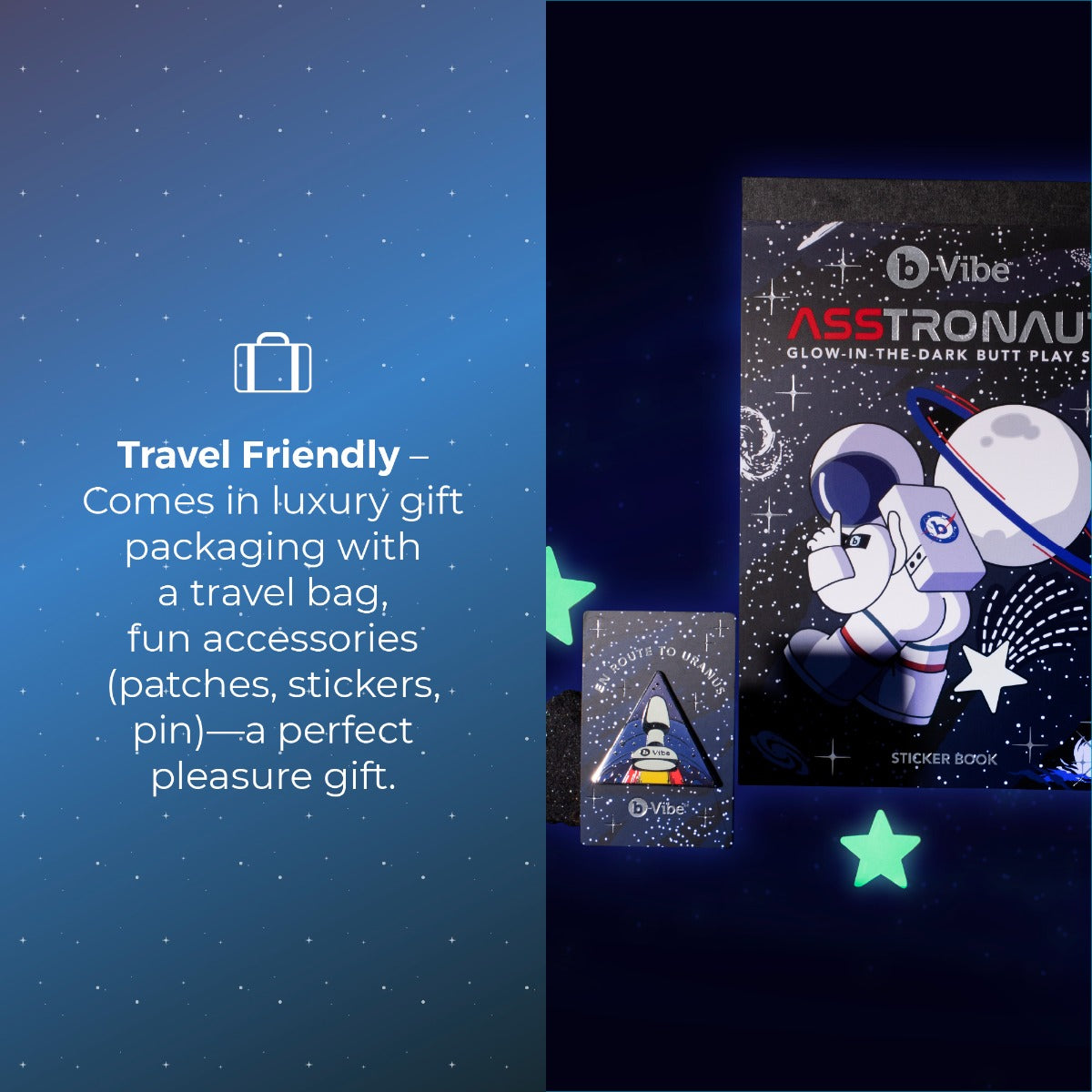 Light up your intimate moments with the Asstronaut Glow-In-The-Dark Butt Play Set. This dual-motor powerhouse combines rotating and vibrating sensations to deliver intense prostate and perianal stimulation. The glow-in-the-dark feature adds a playful, visually exciting element to your solo sessions or partnered adventures, making this set stand out from standard toys.