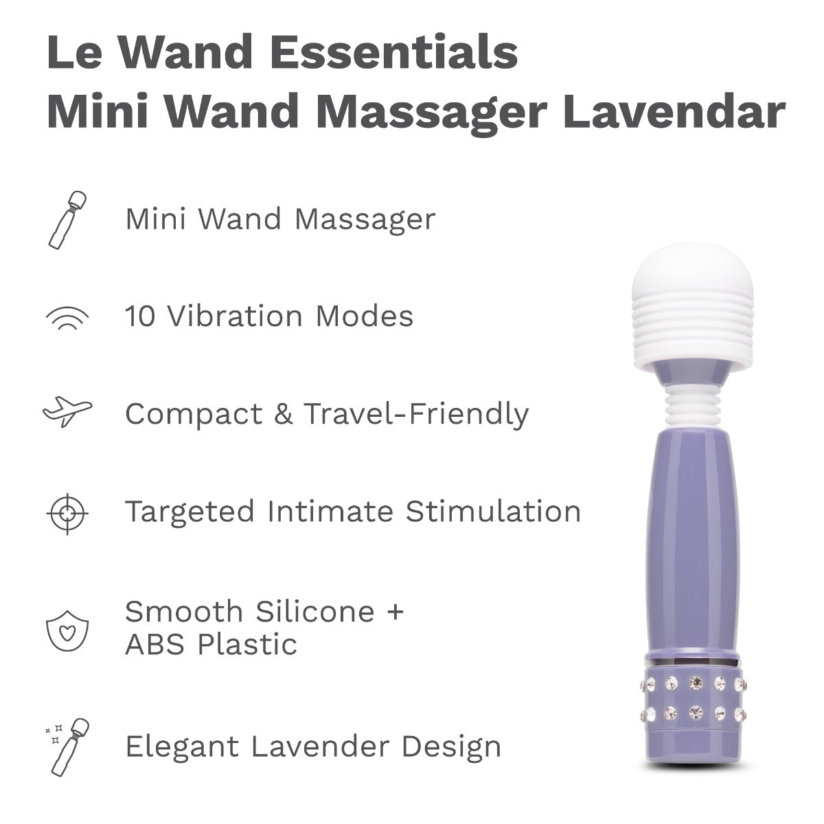 This compact wand massager packs serious power into a travel-friendly size. The smooth, firm silicone head targets exactly where you want it, while 10 vibration modes let you dial in your perfect sensation. Whether you're exploring solo, enjoying partner play, or using it for general muscle relief, the lavender finish adds a touch of elegance to your collection.
